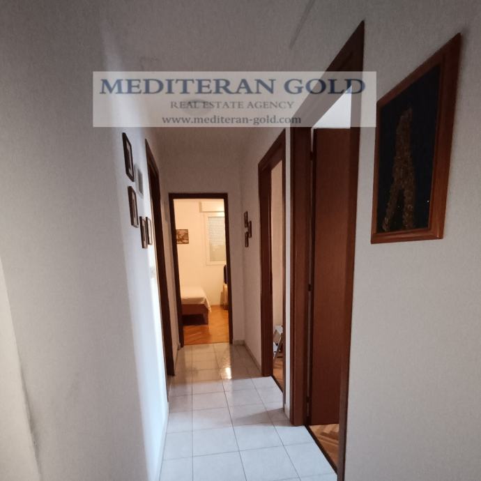 Split, centar, u stambenoj zgradi s liftom, prodaje se prostran i funkcionalan trosoban stan površine 97,50 m², smješten na četvrtom katu. Stan je izvrsnog rasporeda te se sastoji od: odvojenog dnevnog dijela: kuhinje s blagovaonicom i dnevnim boravkom, lođe, spreme te mali sanitarni čvor, tri spavaće sobe, kupaonice i dodatne manje lođe. U cijenu su uključena i dva garažna mjesta. Neposredna blizina centra grada, šetnica, trgovina, škole, javnog prijevoza i ostalih sadržaja. Idealno za obiteljski život ili kao investicija. Moguća zamjena za dvosoban stan.