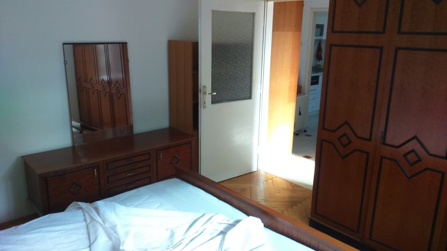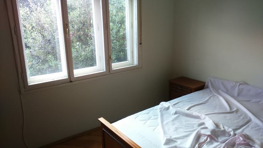 Iznajmljujem stan za dugoročan najam bez sezonskih prekida. Spavaća soba je s bračnim krevetom te u dnevnom boravku ima još 2 pomoćna široka ležaja od rasklopivog trosjeda. Stan se nalazi u mirnom predjelu u kući s pet stanova okružen zelenilom i manjim kućama.