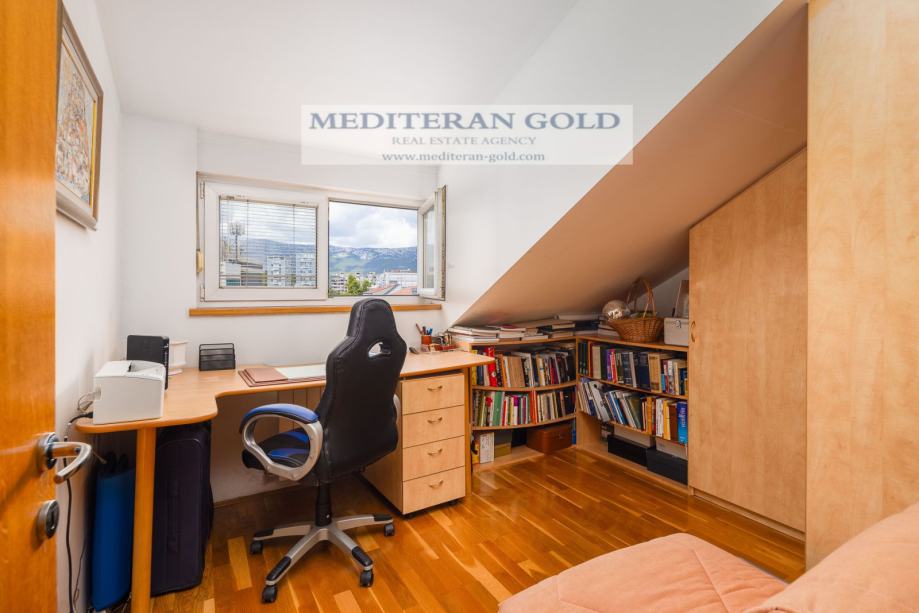 Split, Centar, četverosoban, dvoetažan stan od 149,17m2, položen na trećem i četvrtom katu, kompletno uređen. Na prvoj etaži je kuhinja s velikim dnevnim dijelom, kupaona swc-om, lođa sa kaminom, na drugoj etaži su četiri sobe, kupaona s wc-om i lođa. Sve je vrlo kvalitetno obnovljeno. Neposredna blizina centra grada, šetnica, trgovina, škole, javnog prijevoza i ostalih sadržaja. Idealno za obiteljski život ili kao investicija. Moguća zamjena za dvosoban stan.