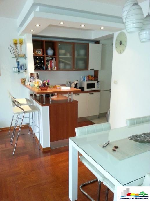 SPLIT Centar Kavanjinova ulica Lux stan na 2 katu manje stambene zgrade od 3 kata -urbana villa,jugo-istok orijentacije, koji se u naravi sastoji od kuhinje , blagavaone s velikim dnevnim boravkom i izlazom na južni balkon, predsoblja , tri spavaće sobe koje imaju izlaz na istočne balkone te dva kupatila ukupne površine 110 m2.Stan je kompletno renoviran , lux opremljen i namješten.Izvrsna lokacija u blizini svih sadržaja , idealno za stanovanje.