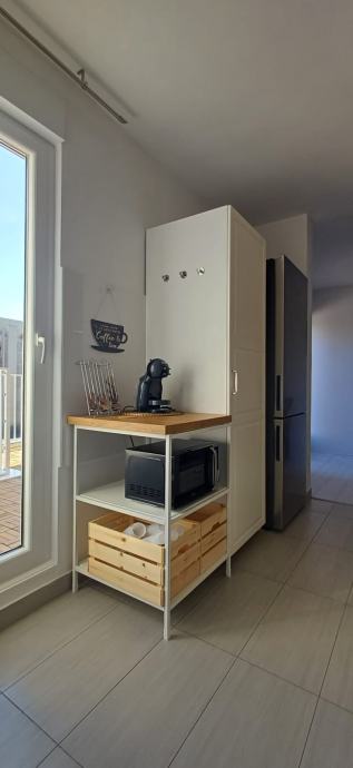 Sastoji se od tri spavaće sobe, dnevne sobe, kuhinje, blagovaonice,dvije kupaonice, ostave(praonica rublja), tri balkona i predivne terase.