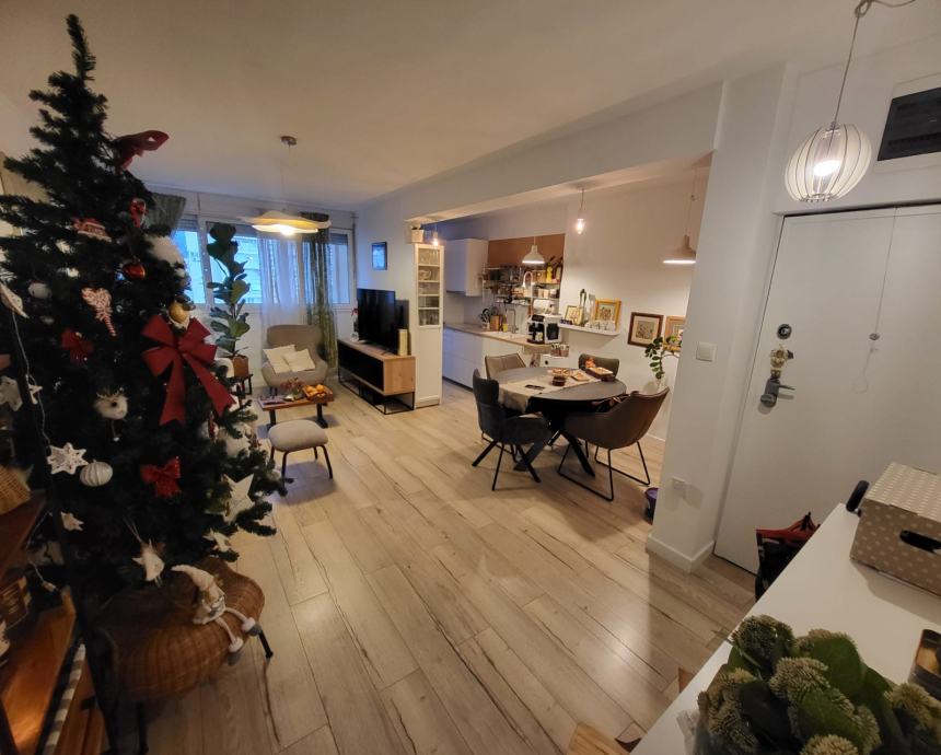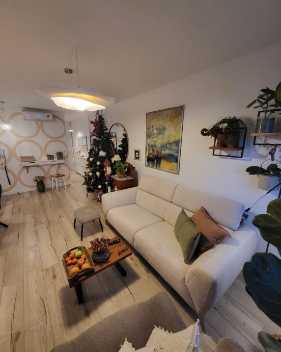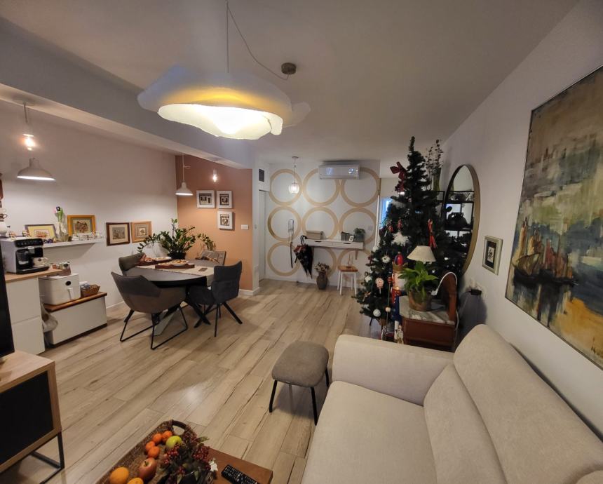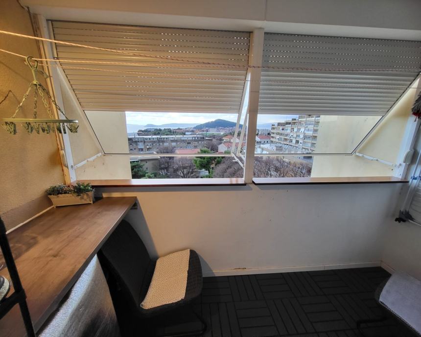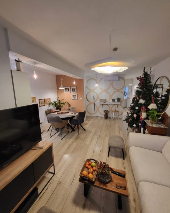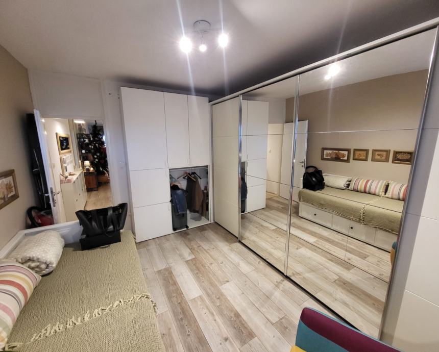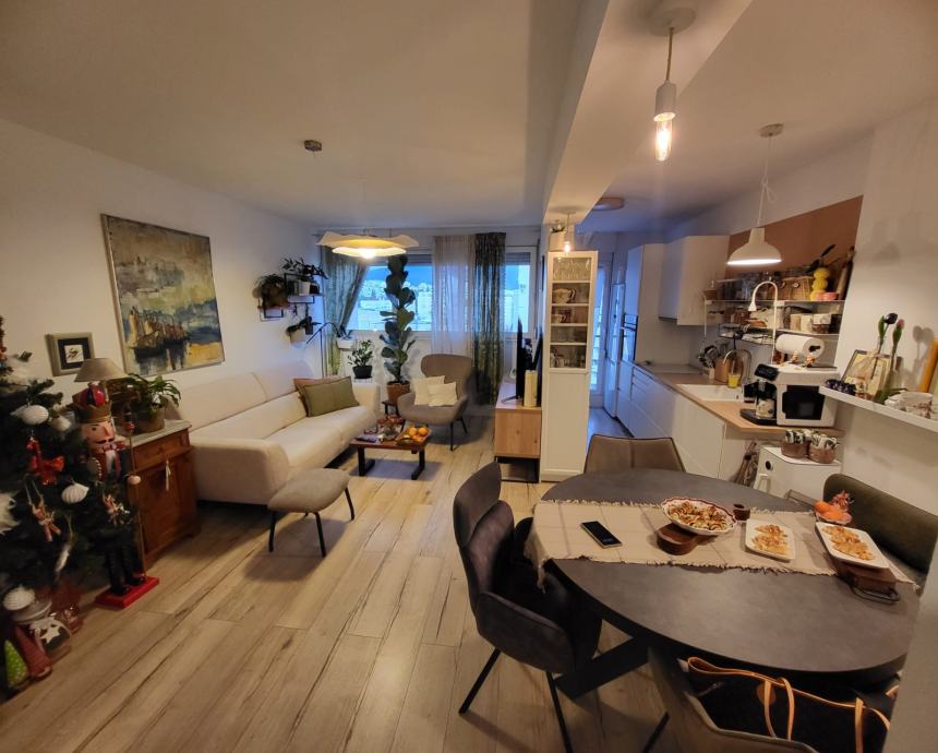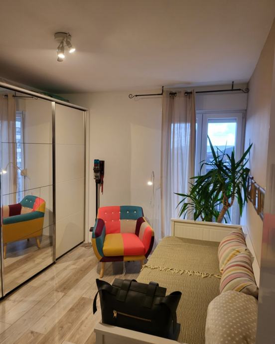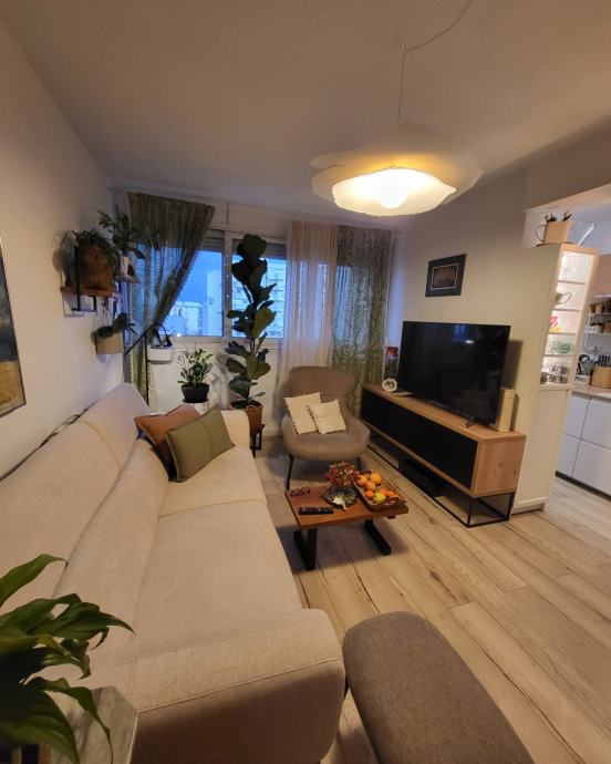 Stan 72m2, 7 kat, zgrada od 9 katova, godina izgradnje 1975. Ima kuhinju, blagavaonicu i dnevnu sobu u jednom, 2 spavace sobe, wc, hodnik i balkon. Prodaje se namjesten. Cijeli stan je preuređen, nova struja, voda, podovi, pvc prozori. Fasada obnovljena. Novi lift. Stanu pripada i balkon na stepenistu, koji djeli sa susjedom nasuprot. Na katu dva stana.