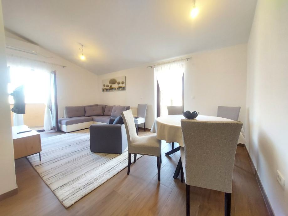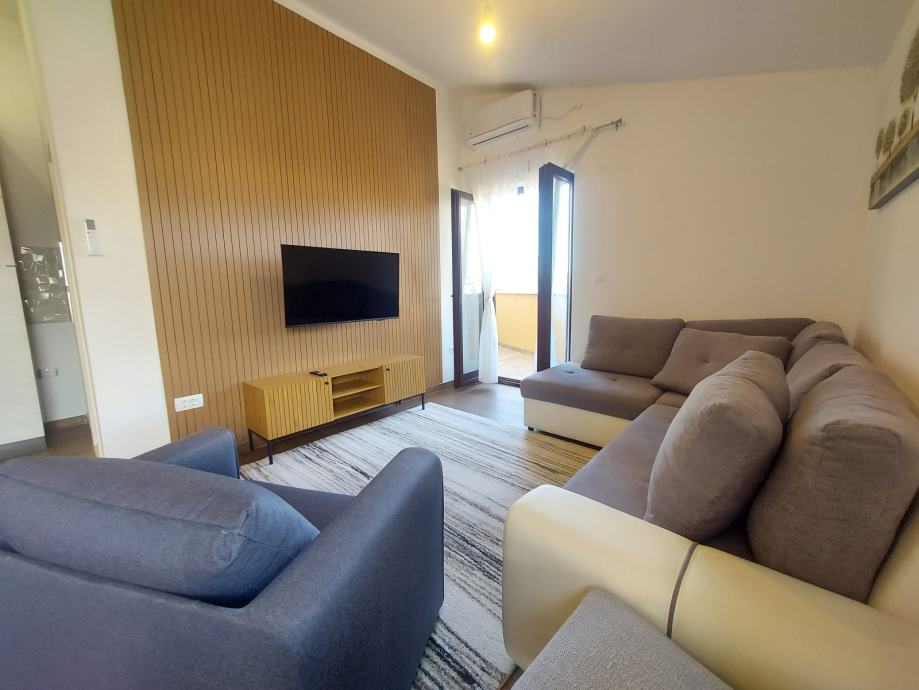 Stan je kompletno namješten i opremljen ( klimatizacija, perilica posuđa, perilica rublja, dvije televizije, sve novo).