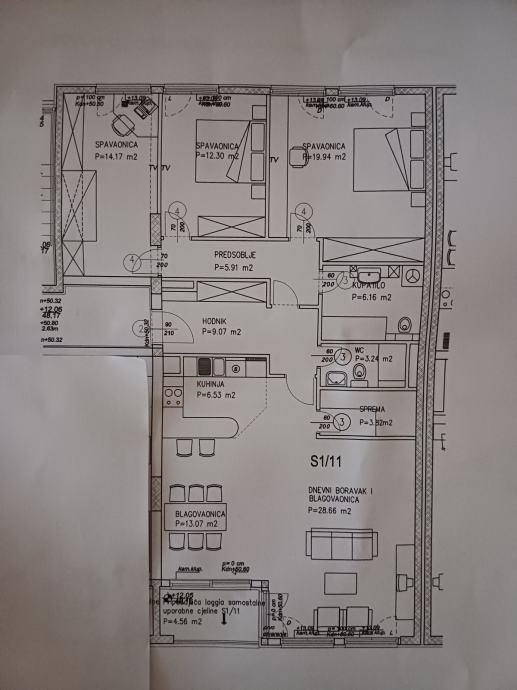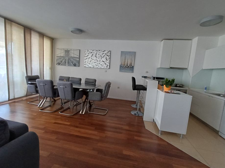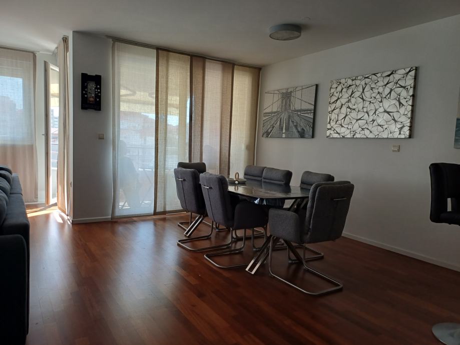 Stan je površine 127 m2, položen je na 4. katu stambene zgrade sa liftom. Sastoji se od predsoblja, tri spavaće sobe, kupaonice, wc-a, spreme, kuhinje, blagovaonice, dnevnog boravka i lođe koja je na jugu.
