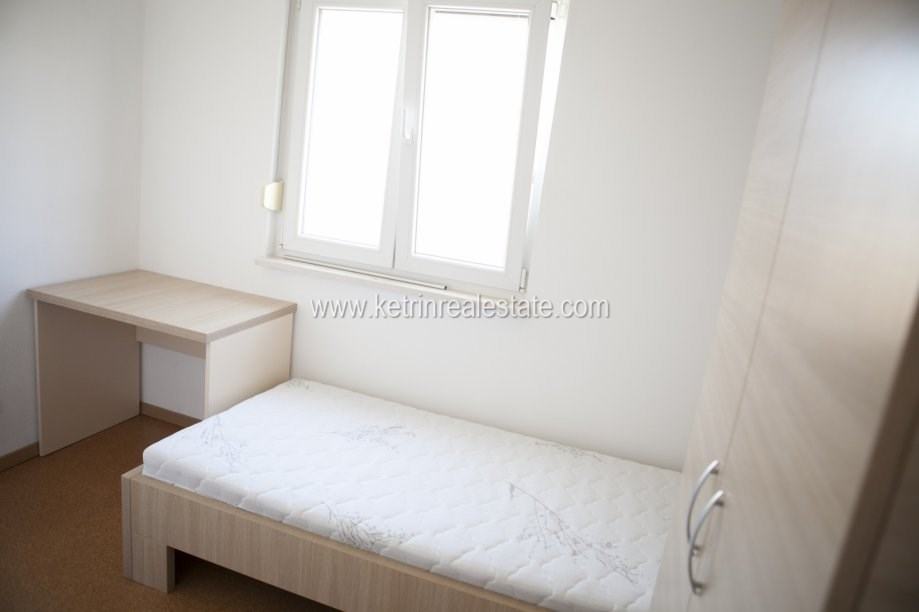 Dvosoban stan površine 60m2 u novogradnji. Potpuno nov i namješten. Sastoji se od dvije spavaće sobe, kupatila te kuhinje s blagovaonicom i dnevnog boravka sa izlazom na lođu.