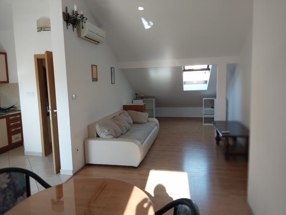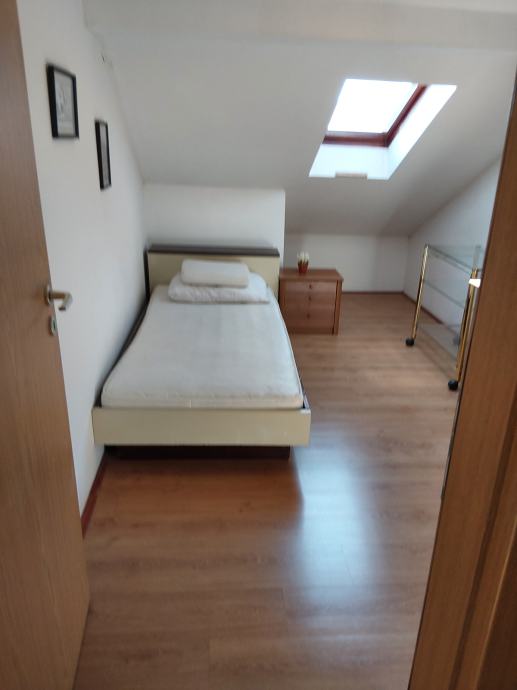 Iznajmljujem stan u potkrovlju privatne kuće, Novi kreveti 3 kom ( naručeni), nova kuhinja ( naručeno) noviji trosjed i dvosjed u DB. Idealno za obitelj s dvoje osnovnoškolske djece jer je škola iza objekta te se ne prelazi cesta. Stan ima tri spavaće sobe DB, blagovaonu, kuhinju 2 wc a . Lođu s pogledom na nathodnik na Mejašima. Stanodavci ne maltretiraju s posjetama, pozivima i sl. Skakanje i trčanje po stanu nisu poželjni drugo nas ne interesira.