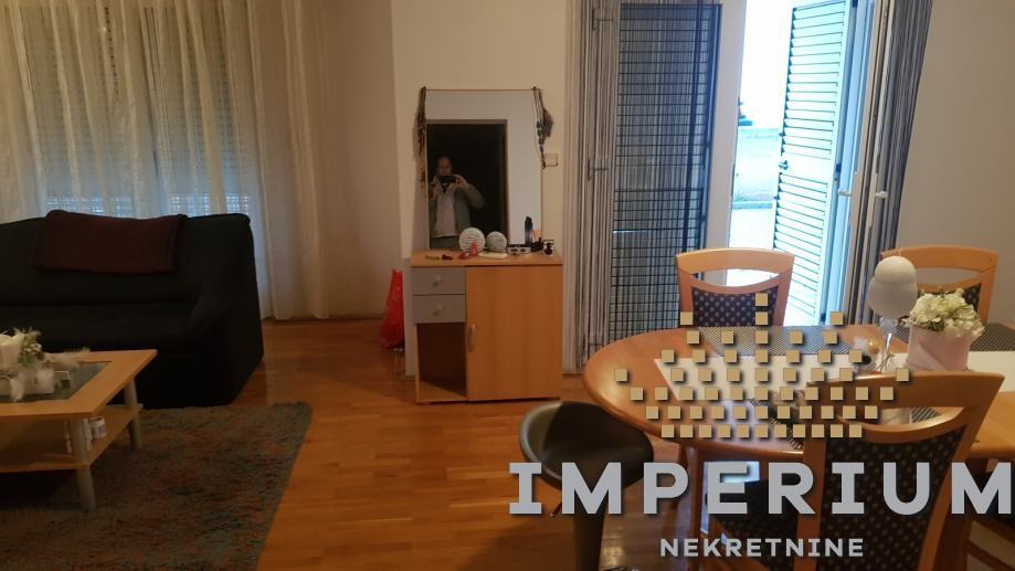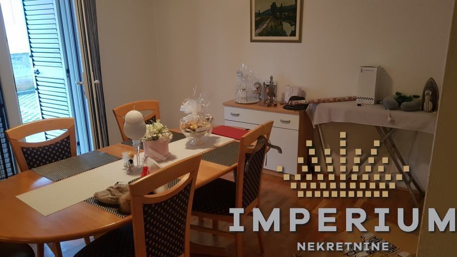 Stan se sastoji od ulaznog dijela, dnevnog boravka, kuhinje s blagavaonom, dvije spavaće sobe, kupaonice, dodatnog wc-a, terase i balkona.
