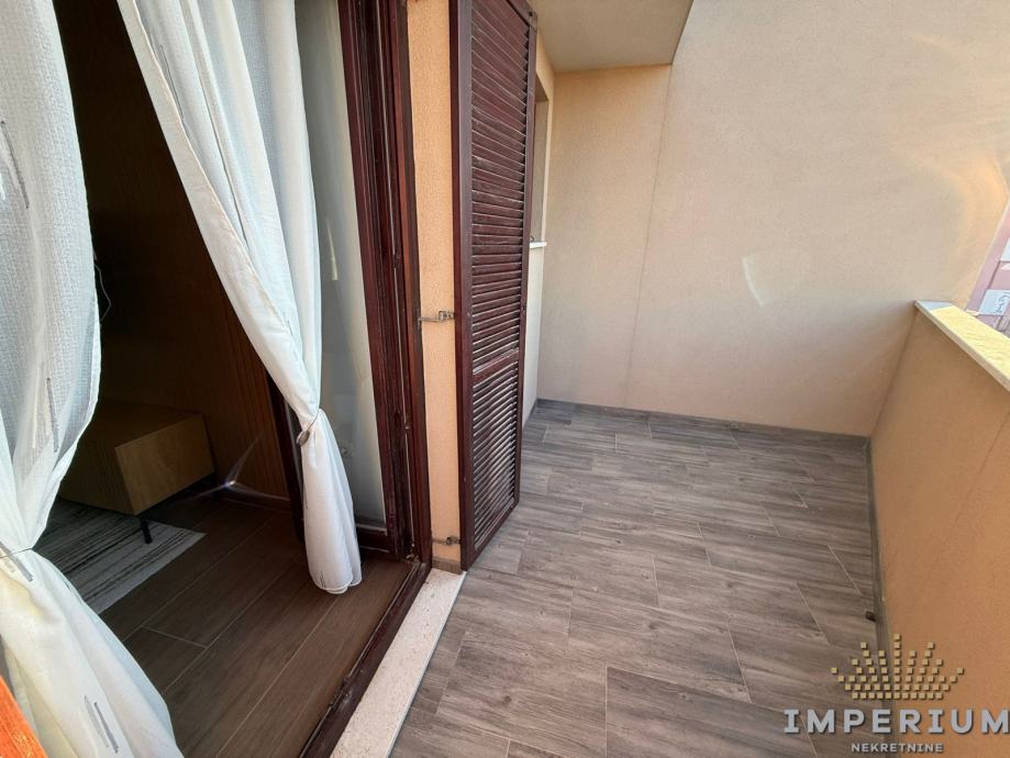 Stan se sastoji od ulaznog dijela, dnevnog boravka, kuhinje s blagavaonom, jedne spavaće sobe, kupaonice i dva balkona.