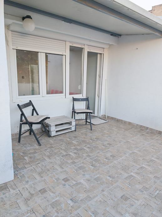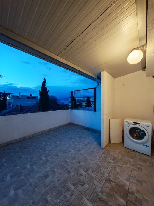 Potpuno namješten 2-soban stan, ulica Mandalinski put (Spinut) odmah ispod Marjana, površine 24 m2, na četvrtom (zadnjem) katu zgrade bez lifta. Stan ima izlaz na vlastitu terasu površine 24 m2. Stan se sastoji od predsoblja, spavaće sobe, kupaonice, kuhinje i dnevnog boravka spojeno. Potpuno opremljena kuhinja (ploča za kuhanje, pećnica, hladnjak sa zamrzivačem, kompletan pribor za jelo i kuhanje, stol za objedovanje), kupaonica (tuš kabina, wc), spavaća soba (ugradbeni ormar, krevet), dnevni boravak (kauč, klima uređaj), PVC stolarija. Veš mašina na terasi. Grijanje je na klima uređaj.