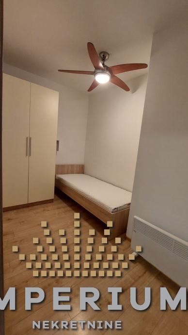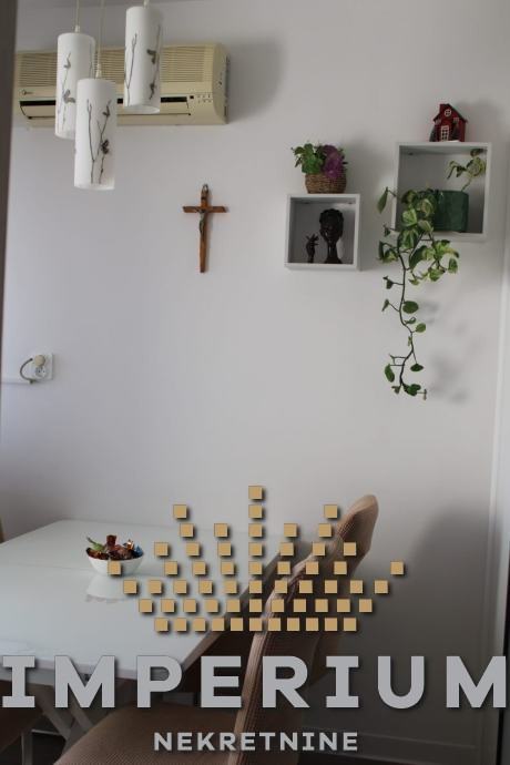 Stan se sastoji od ulaznog dijela, kuhinje s blagavaonom, dvije spavaće sobe, kupaonice i balkona I ostave.