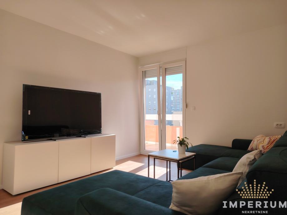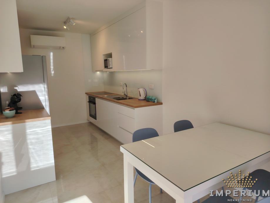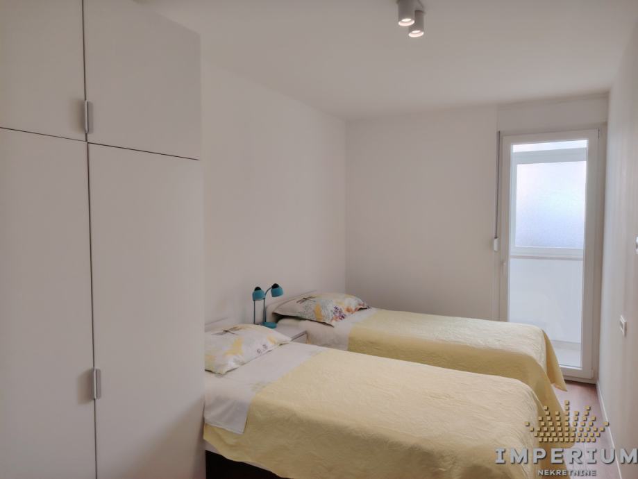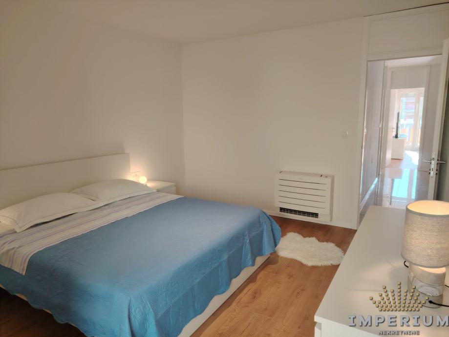 Stan se iznajmljuje dugoročno, a sastoji se od ulaznog dijela, dnevnog boravka, kuhinje s blagavaonom, dvije spavaće sobe i dvije kupaonice.