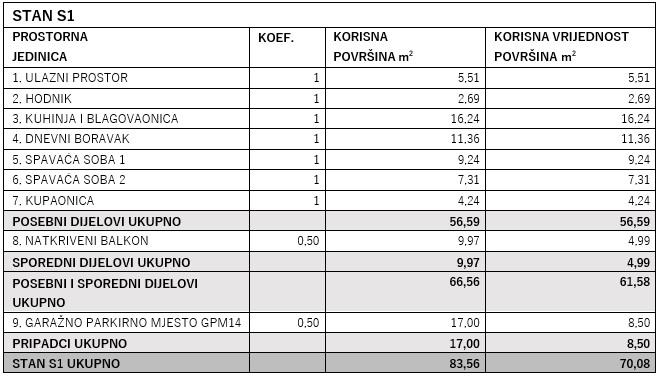 • Površina: 61,58 m² s koeficijentima, korisna površina 66,56 m²
