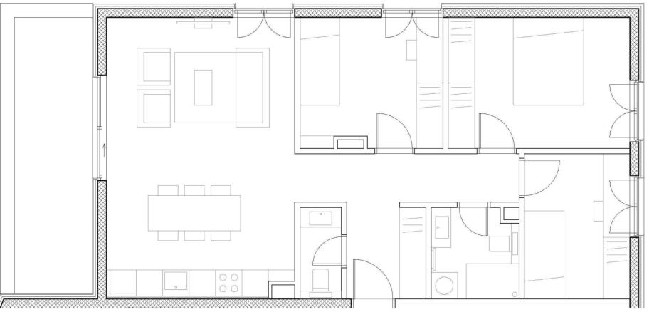 • Izvrsna zvučna izolacija između prostorija, sobe sa sobnim vratima pojačane zvučne izolacije