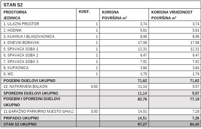 • Površina: korisna površina 82,76 m², s koeficijentima 77,19 m²