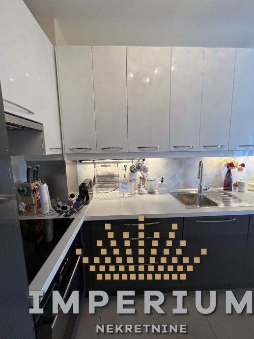Stan se sastoji od ulaznog dijela, dnevnog boravka, kuhinje s blagavaonom, dvije spavaće sobe, kupaonice i loggie.