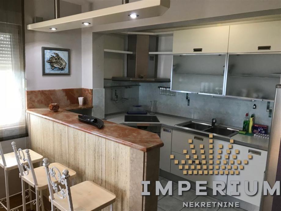 Stan se sastoji od ulaznog dijela, dnenog boravka, kuhinje s blagavaonom, tri spavaće sobe i kupaonice.