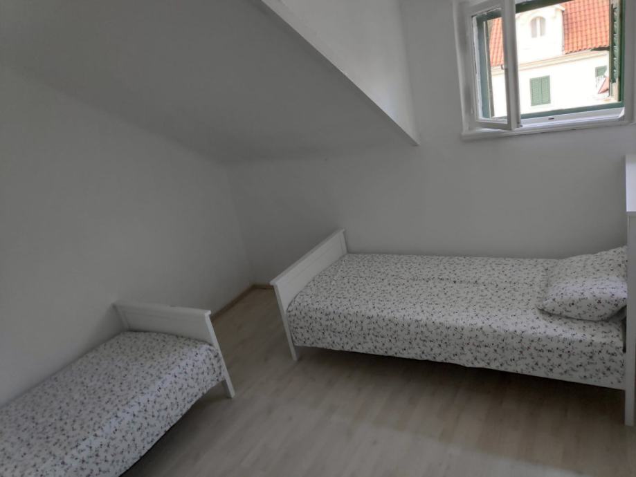 Iznajmljujem osunčan, šesterosoban stan sa 14 ležajeva. Nalazi se u potkrovlju urbane vile sa predivnim pogledom na cijeli grad.