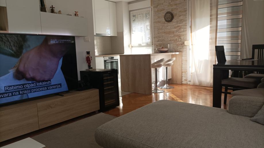Prodajemo na Žnjanu, ODLIČAN stan na drugom katu s garažnim parkingom, povezan liftom sa stanom.Stan je orijentacije sjever jug, a sastoji se od dvije spavače sobe, kupaonice i zasebno WC, kuhinjska niša s balagovaonicom, dnevnim boravkom i lođom na jugu. Stan se prodaje kompletno namješten, kuhinja s bosch aparatima, klimatiziran i sav ostali namještaj. Stan je ugodan za življenje u blizini svih sadržaja.