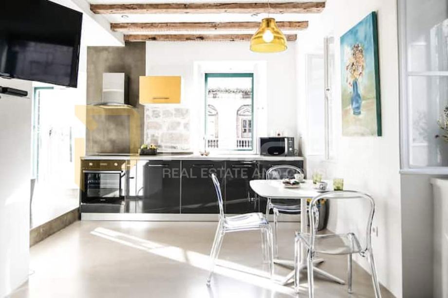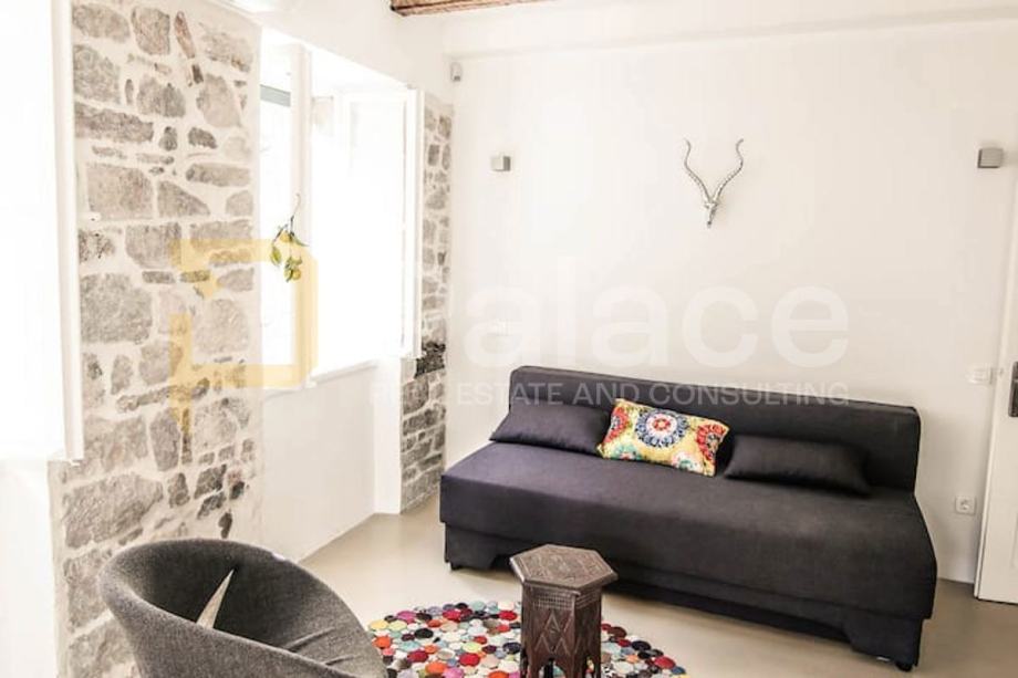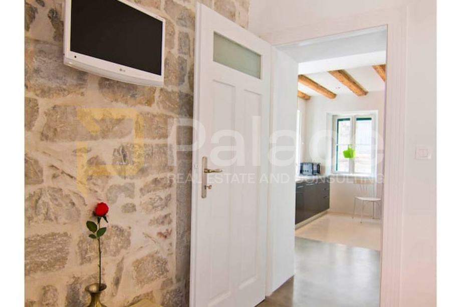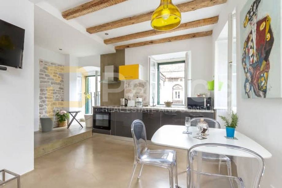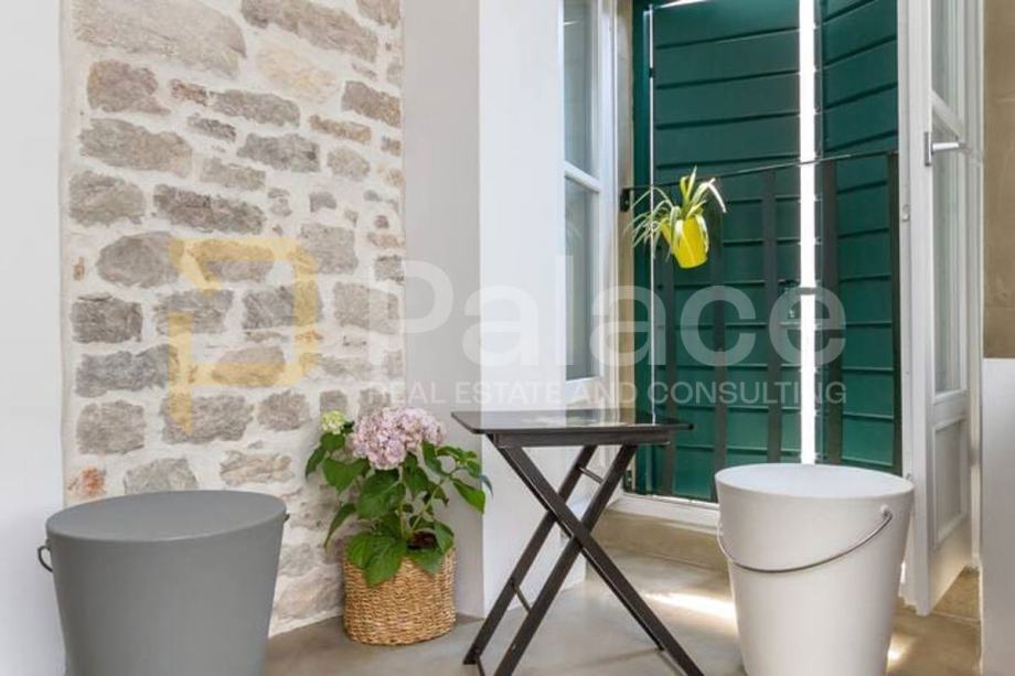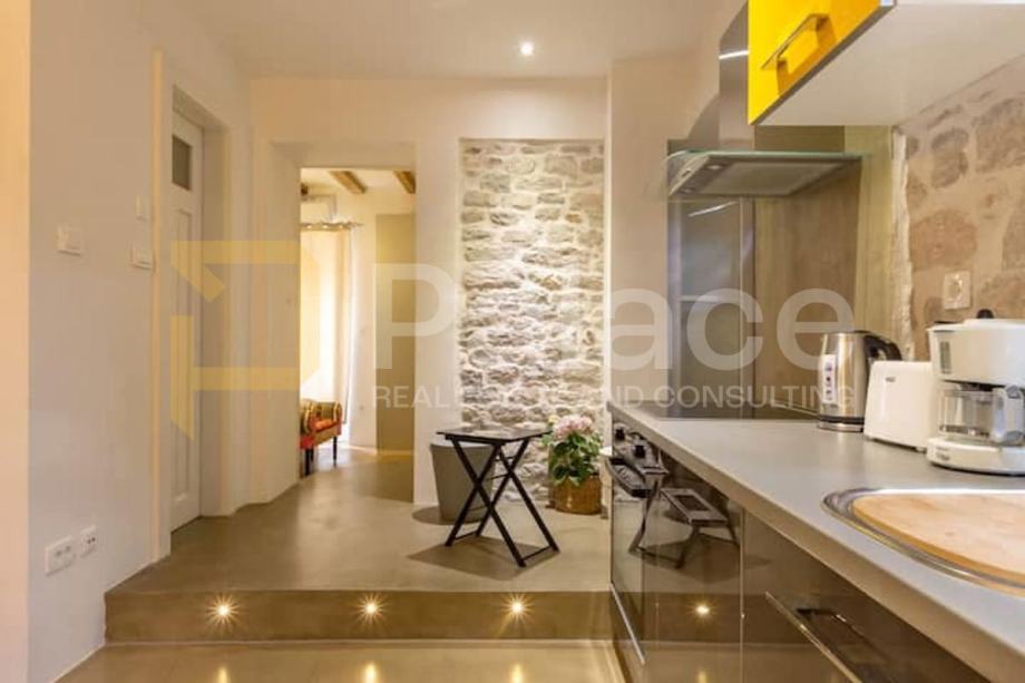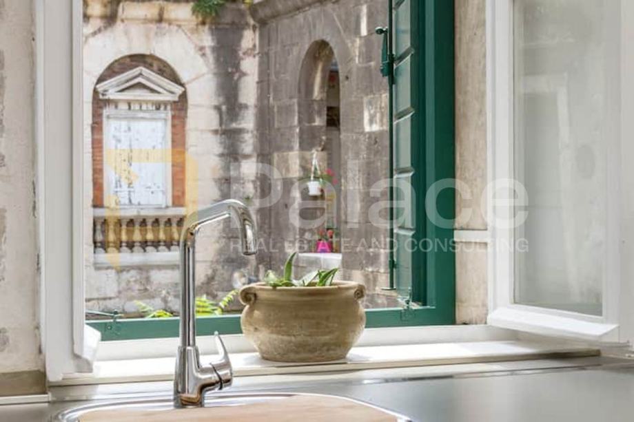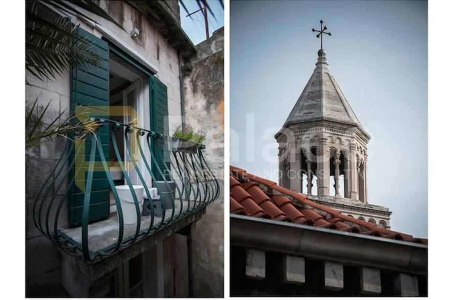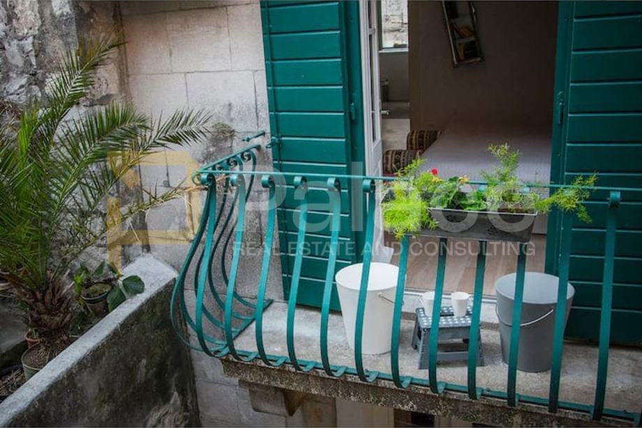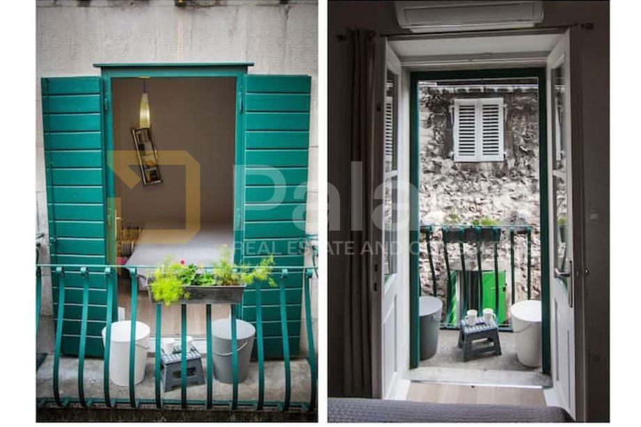 Stan je kompletno renoviran. Postavljene su nove vodovodne i elektro instalacije, renovirani su podovi te je promijenjena vanjska stolarija. Soba i kuhinja su klimatizirani.Već dugi niz godina stan je bio isključivo u vrlo uspješnom turističkom najmu.Ova jedinstvena nekretnina sastoji se od jedne spavaće sobe, kuhinje s blagovaonicom i dnevnim boravkom, predsoblja te kupaonice i šarmantnog balkona s kojeg se pruža pogled na tisućljetne zidine Dioklecijanove palače.