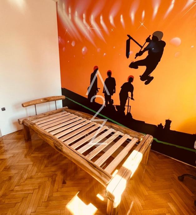 Stan je etažiran, ima Uporabnu dozvolu, a sastoji se od hodnika, kuhinje i blagovaonice, prostranog dnevnog boravka i čak četiri spavaće sobe (jedne master sobe i 3 dječje sobe), wc-a za goste, kupaonice sa tušem i wc-om, dodatne kupaonice sa kadom i perilicom/sušilicom te balkona, koji omogućuje malu zelenu oazu unutar grada. Uz propusnicu za automobil parkirno mjesto je osigurano u dvorištu zgrade. Balkon ima dovoljno prostora za sjedenje, pa čak i za postavljanje jaccuzzija za uživanje pod otvorenim nebom.
