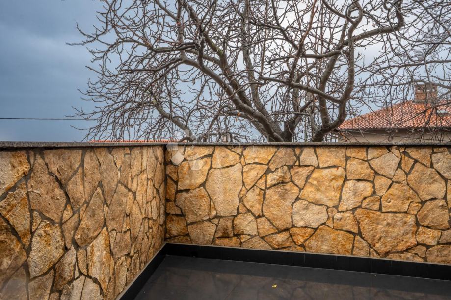 Stan se nalazi na visini prvog kata te se odlikuje izuzetno funkcionalnim rasporedom prostora. Sastoji se od kuhinje s blagovaonicom iz koje se izlazi na balkon, djelomično natkriven i zatvoren, odvojenog dnevnog boravka, dvije spavaće sobe te kupaonice. Kupaonicu se još uređuje i biti će spremna za novog vlasnika.