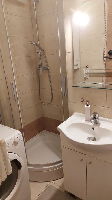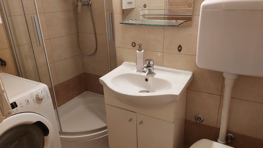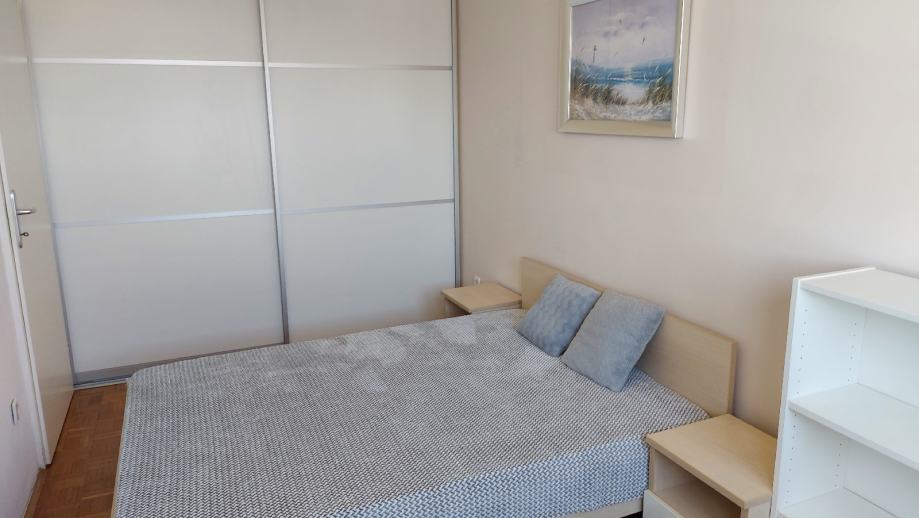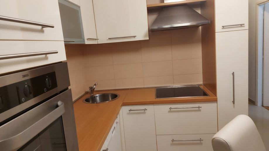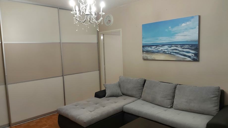 Stan se sastoji od hodnika, dnevne sobe, spavaće sobe, kuhinje i kupaonice te ima spremište u razizemlju. Stan je adaptiran 2008. (instalacije, plocice, brušeni i lakirani parket, pvc stolarija i protuprovalna vrata). Namještaj je raden po mjeri radi maksimalne iskoristivosti prostora. Sav namještaj i oprema su u cijeni.