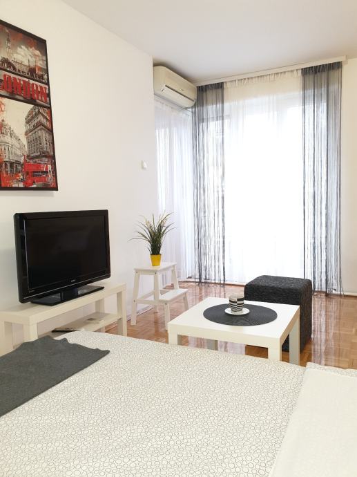 Oprema: Smart TV, klima-uređaj, perilica rublja, radni stol,posteljina i posuđe.
