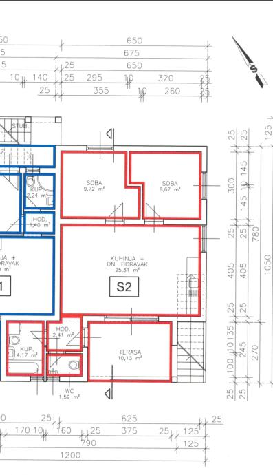 Stan ima dvije spavaće sobe,kupaonu s WC-om + WC i ulaznu loggiu.