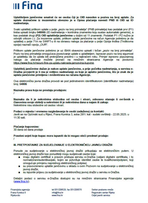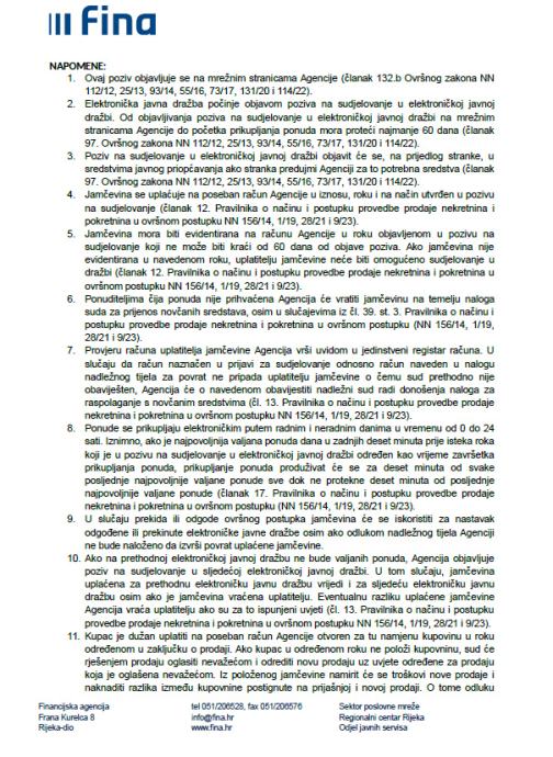 dražbi. U slučaju uplate jamčevine putem instant plaćanja potrebno je paziti na opće uvjete te voditi