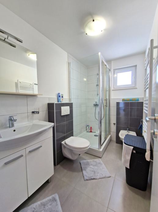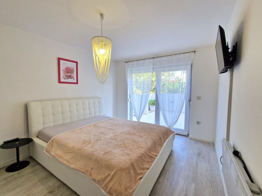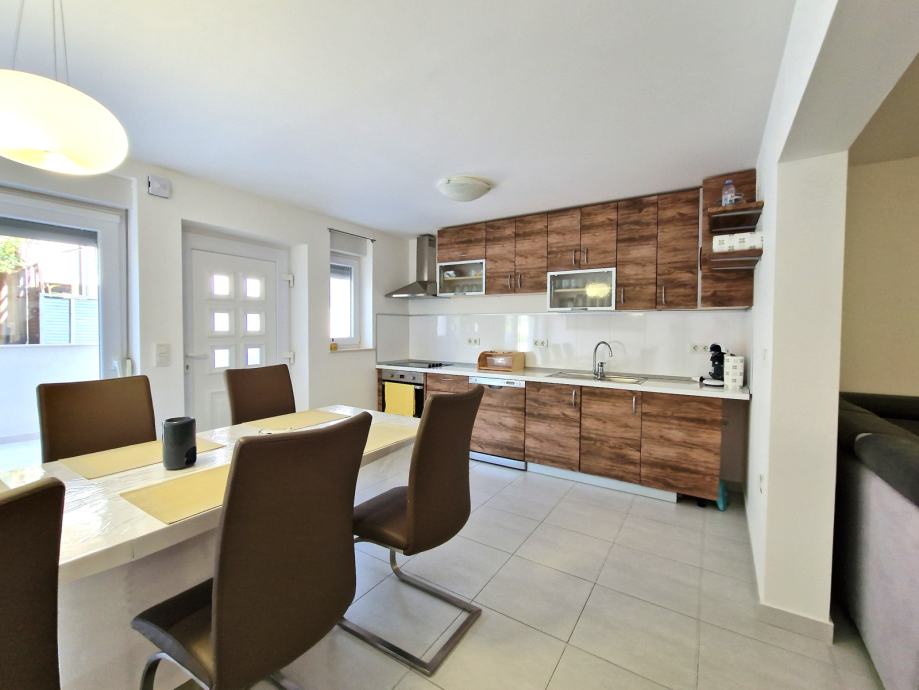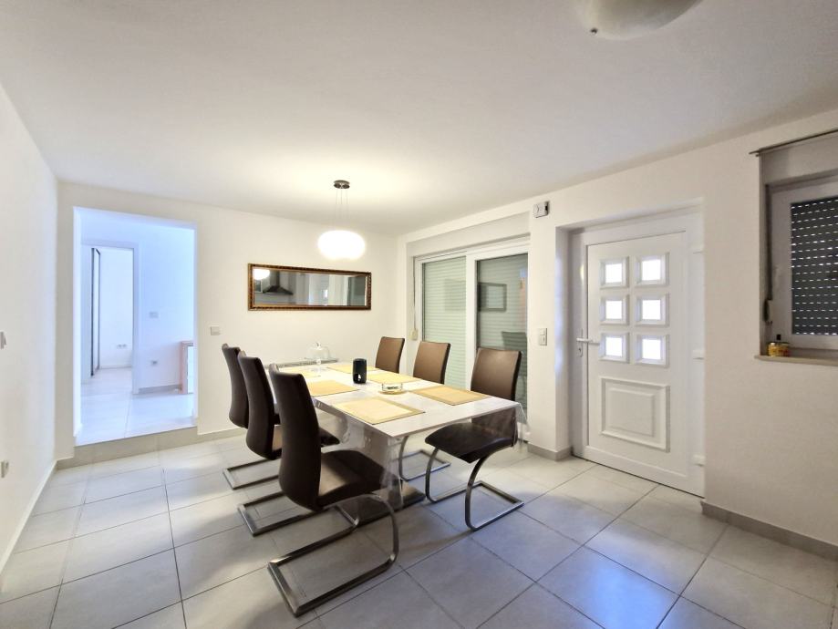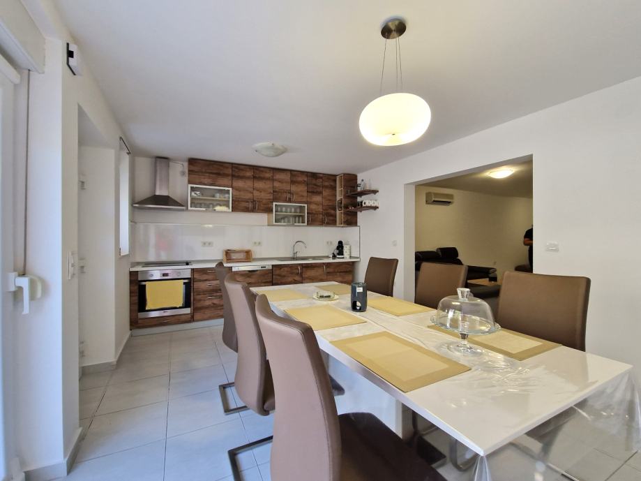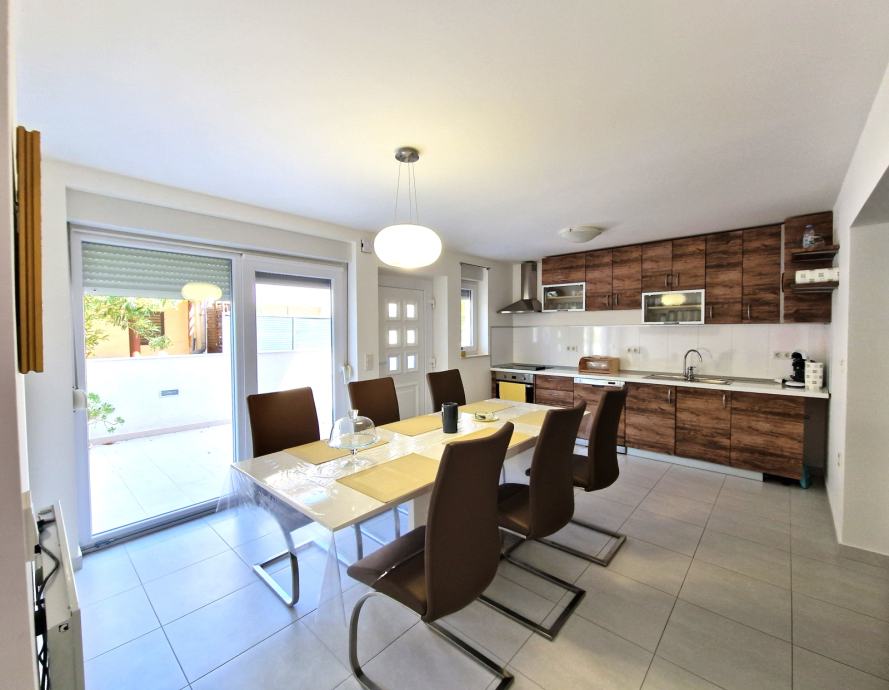 Prodaje se potpuno namješten i opremljen stanu Sabunikama ukupno neto površine od 128,62 m2 na udaljenosti od 600 m od mora i plaže. Stan se nalazi u prizemlju manje zgrade sa ukupno 6 stanova a sastoji se od prostranog dnevnog boravka, kuhinje, tri spavaće sobe, dvije kupaonice, balkona i terase. Stanu pripada prostrano stražnje dvorište, sprmište te jedno parkirno mjesto. .
