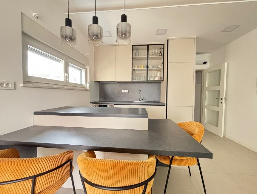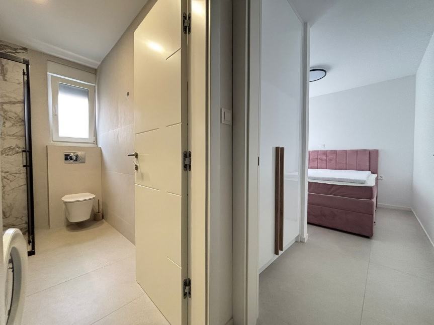 Apartman je klimatiziran i namješten. Ima podno grijanje u kupaonicama. Protuprovalna vrata. Portafon.