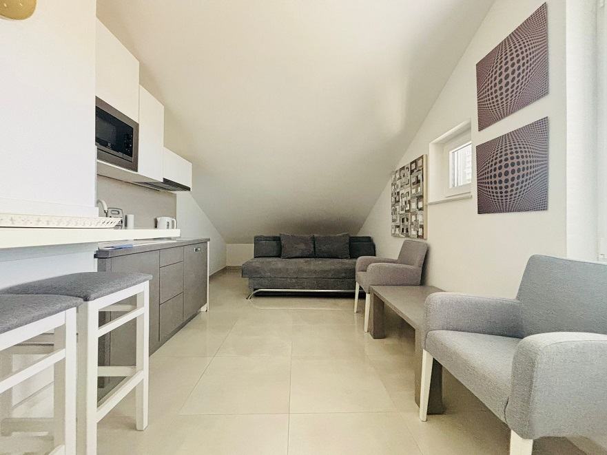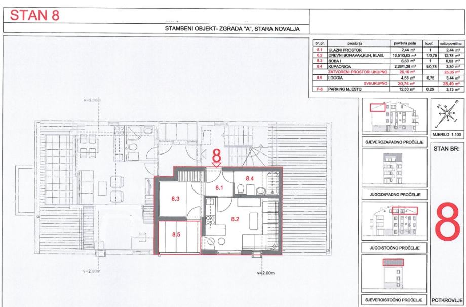 Prodaje se penthouse apartman (S8) ukupne neto površine 31,60 m2 s manjom terasom i pogledom na Novaljsko polje.