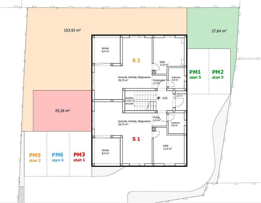 Stanu pripada i veliki vrt površine 103,93 m2 i parkirno mjesto.