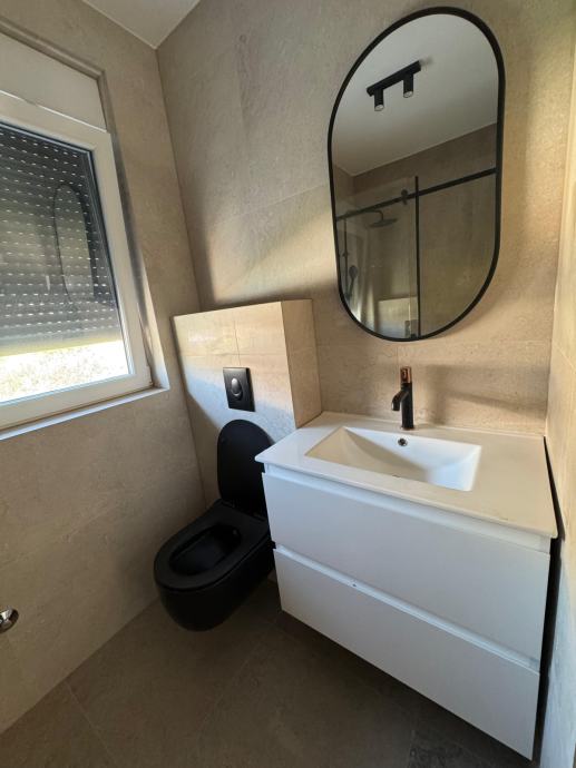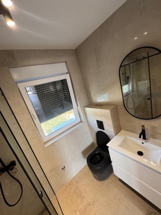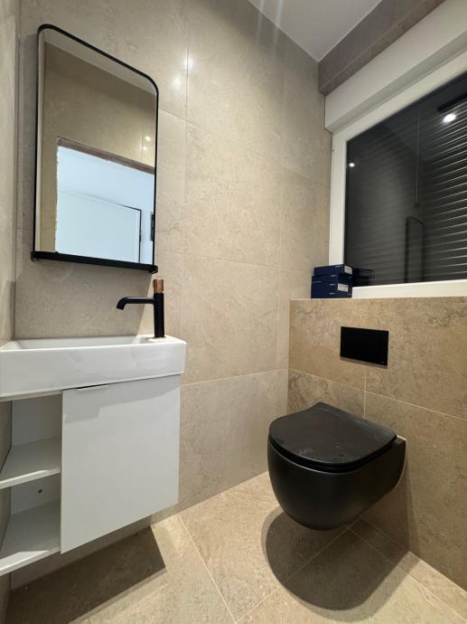 Raspored uključuje i dodatni gostinjski WC, dok glavna kupaonica dolazi s toaletom, modernom keramikom i sanitarijama visoke klase.