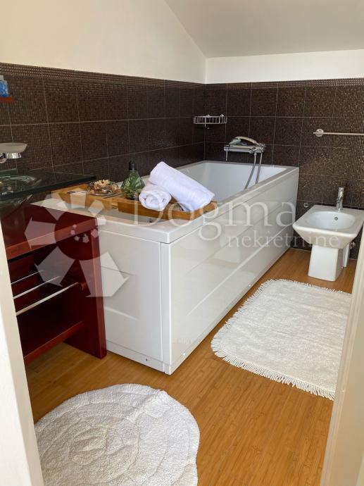 Ovo je savršen dom sa 2 prostrane spavaće sobe, 2 moderno opremljene kupaonice - od kojih se u gornjoj nalazi luksuzni jacuzzi marke Kolpa San, čija je vrijednost čak 57.000 kn. Uz to, stan nudi udoban dnevni boravak, prostrani balkon za uživanje na otvorenom, te osigurano parkirno mjesto