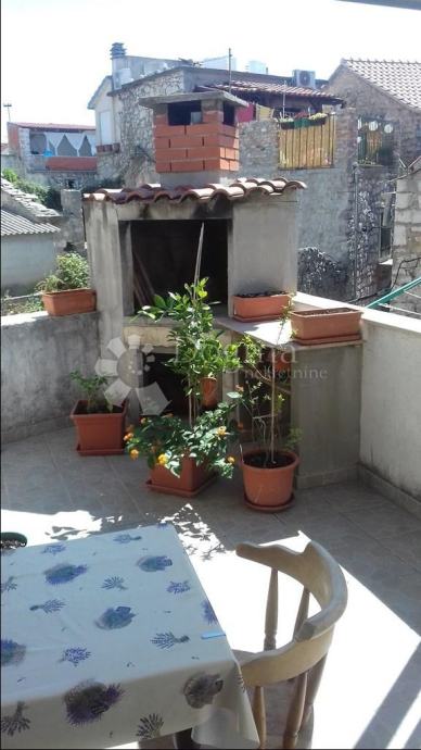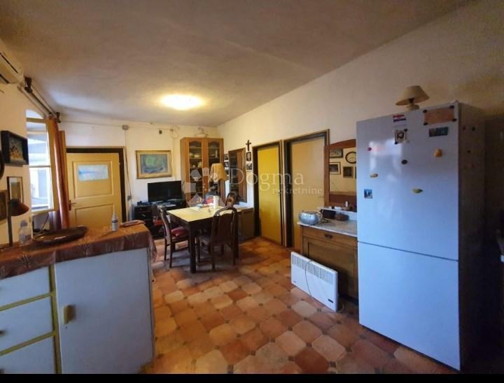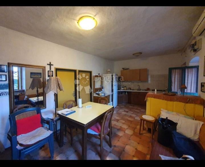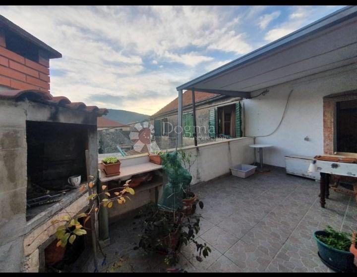 Stan na Hvaru, površine 112 m2, kojemu pripada i potkrovlje (šufit) od 103 m2, idealan je za obiteljski život ili turizam. Stambeni prostor je podjeljen na dva manja studio apartmana i jedan dvosobni stan koji posjeduje dva mala kupatila, blagovaonicu i terasu sa kaminom i ljetnom kuhinjom (spremom).