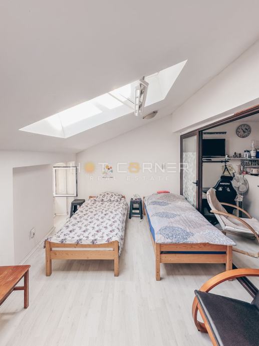 Ova nekretnina površine 72 m2 nalazi se na trećem katu zgrade koja ima ukupno 8 stanova i doslovno je iznad Rovinjske tržnice. Iz prozora spavaćih soba pruža se pogled na rivu i živahnu tržnicu.
