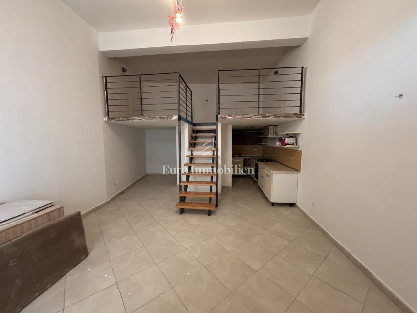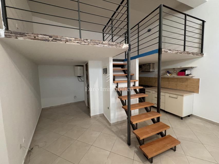 Prodaje se stan ukupne površine 38m2 s galerijom od 17.5 m2 u starom gradu Labinu. Nalazi se u suterenu stambeno-poslovne zgrade, a sastoji se od dnevnog dijela – kuhinje, dnevnog boravka i kupaonice, te noćnog dijela (galerije), do kojeg vode unutarnje stepenice. Grijanje i hlađenje je putem klima uređaja. Prodaje se u stanju kako je prikazano na fotografijama. Uredno vlasništvo.