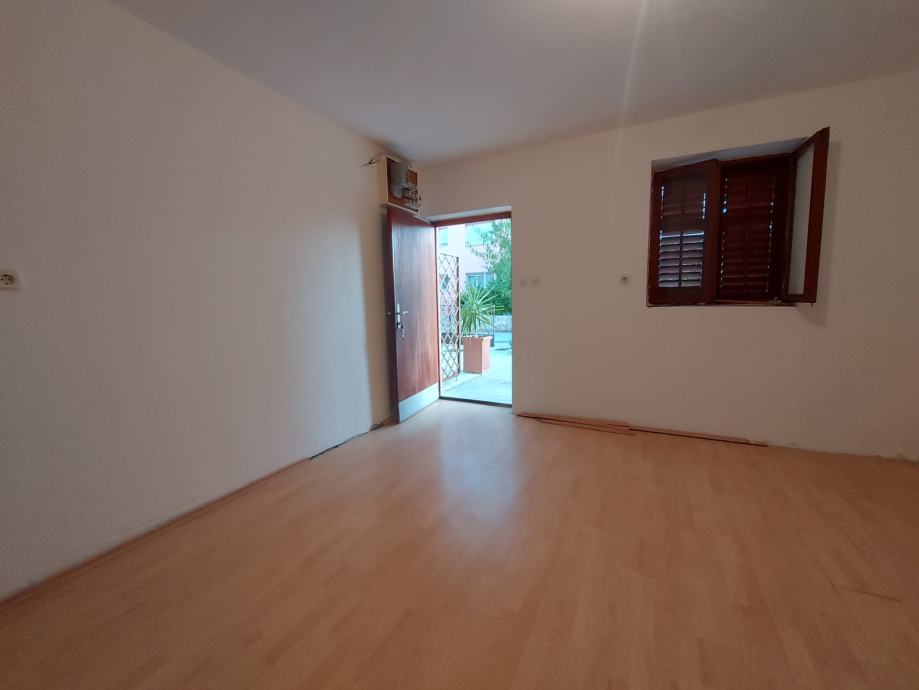 1.STAN - etaža prizemlje, podne površine 43,56m2 , sastoji se od sobe, kuhinje s blagovaonicom i kupaonice. Kao sporedni dio stanu pripada dvoriste podne površine 28,80m2.