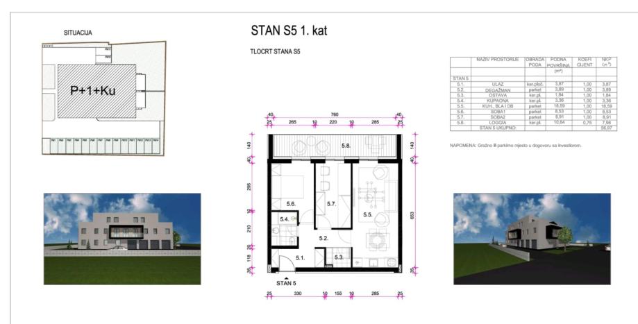 Izvrsna lokacija: U neposrednoj blizini nalaze se svi važni sadržaji – pošta, trgovina, osnovna škola, vrtić, autobusna stanica, dječji park, dom zdravlja i brojni drugi sadržaji. Sve na nekoliko minuta hoda.