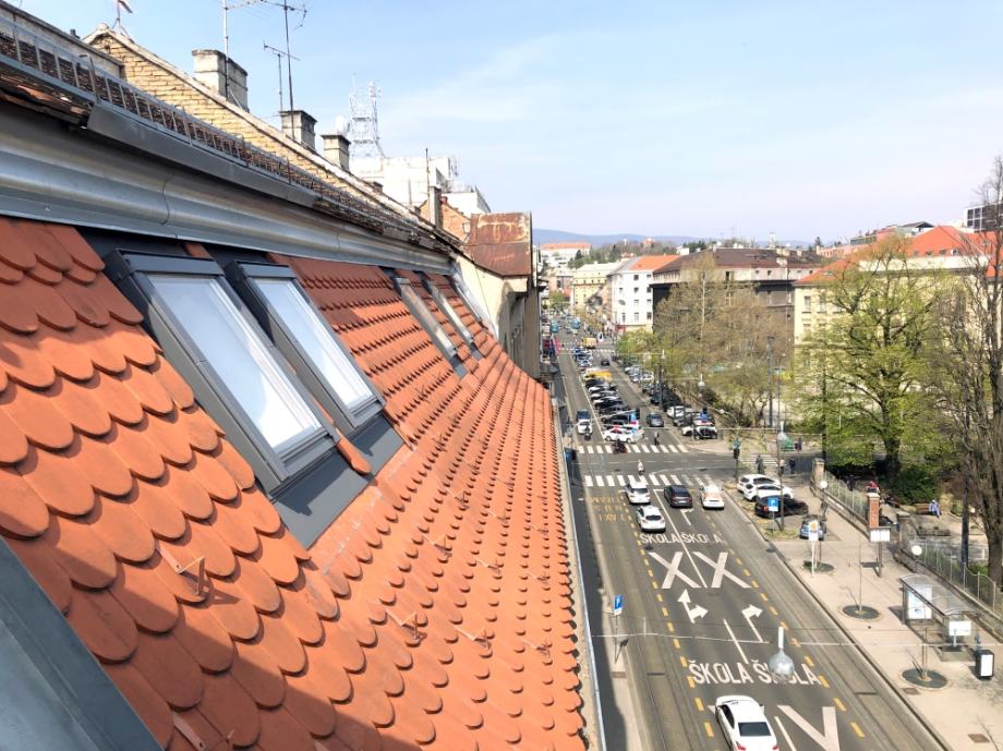 Prodaje se lijepi potkrovni stan veličine 98 m2 u strogom centru grada na 4. katu zgrade koja se nalazi na uglu Boškovićeve i Draškovićeve ulice.