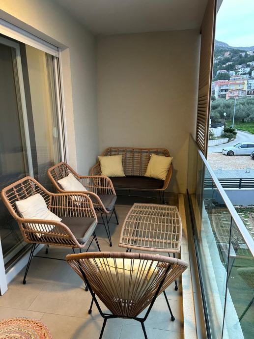 Stan je kompletno namješten, opremljen i klimatiziran, a sastoji se od kuhinje s blagovaonicom, dnevnog boravka, spavaće sobe, kupaonice s WC-om i balkona sa pokretnim brisolejima, ukupne stambene površine cca 50 m2.