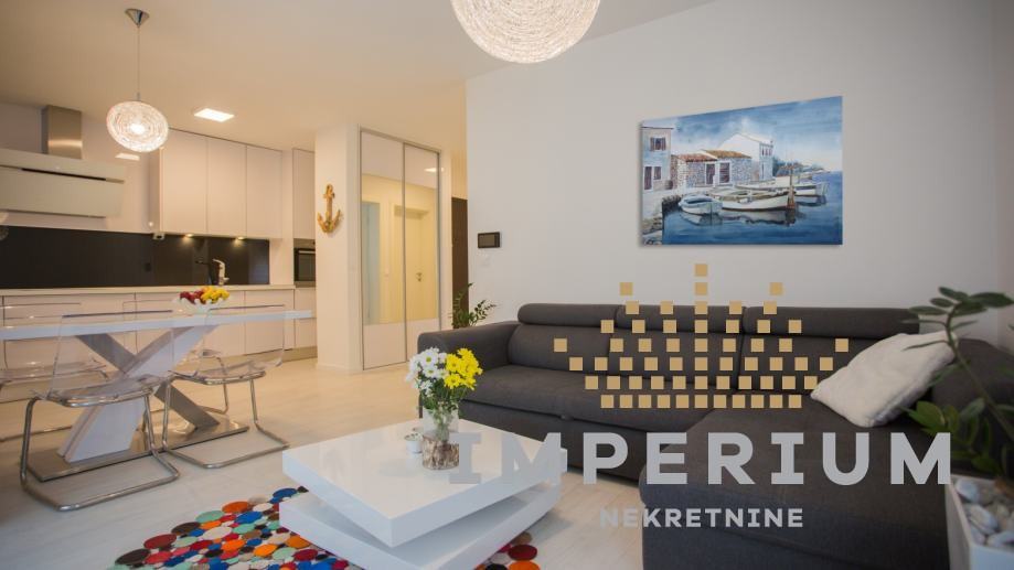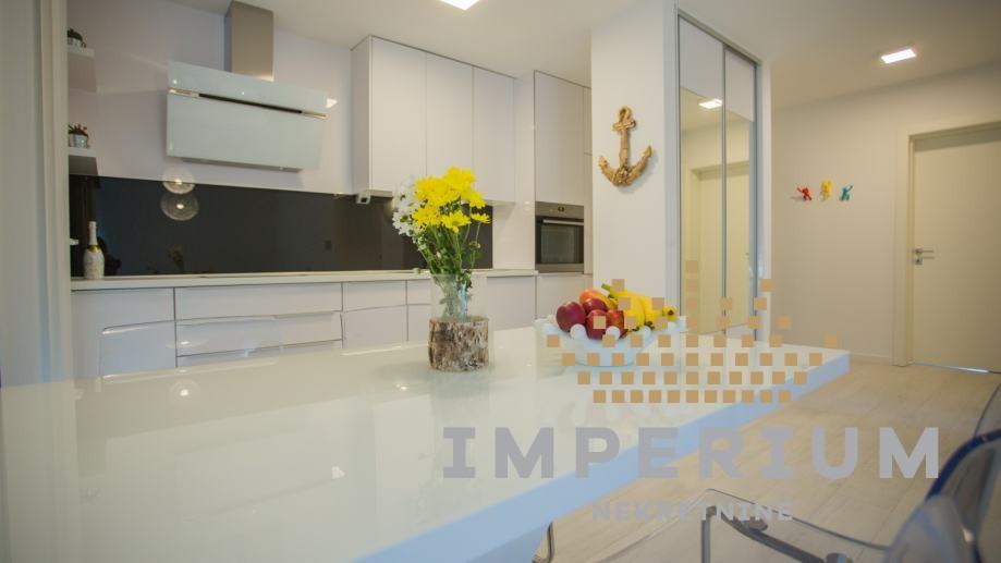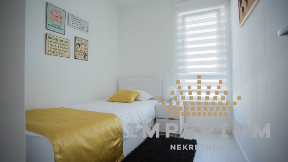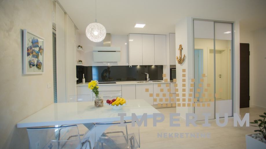 Stan se sastoji od kuhinje i blagavaonice, dnevni boravak, sanitarni čvor, dvije spavaće sobe. Od ostalih sadrzaja tu je: Klima, wifi, perilica posuda, zaseban parking.