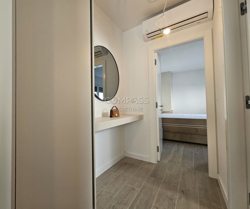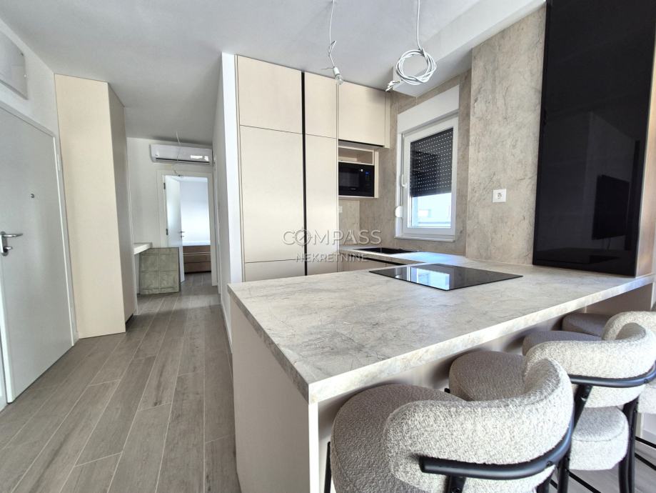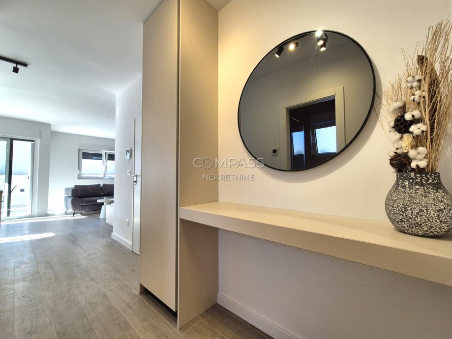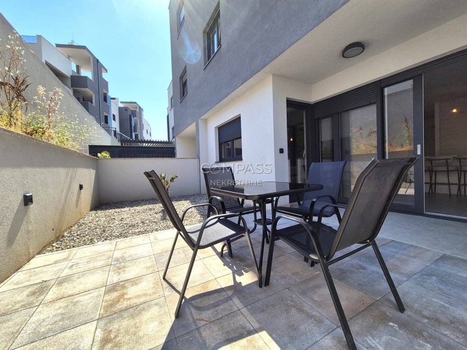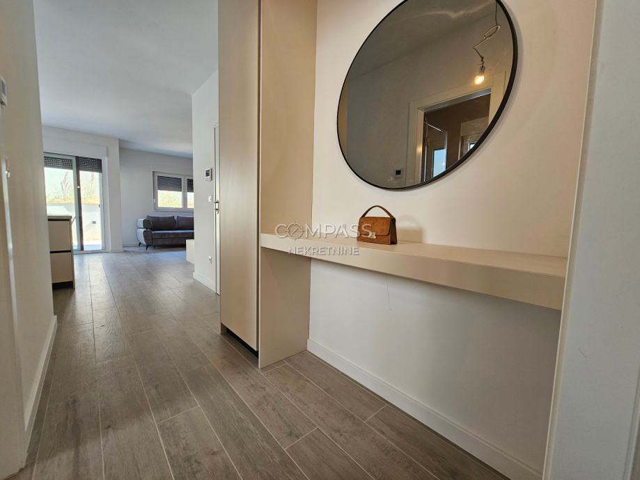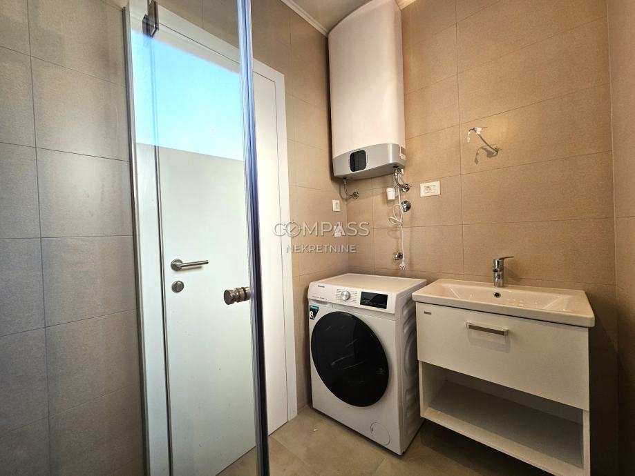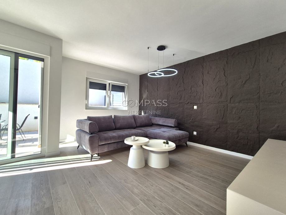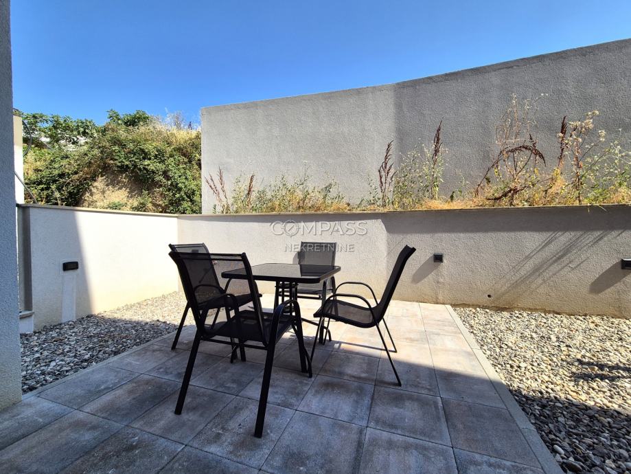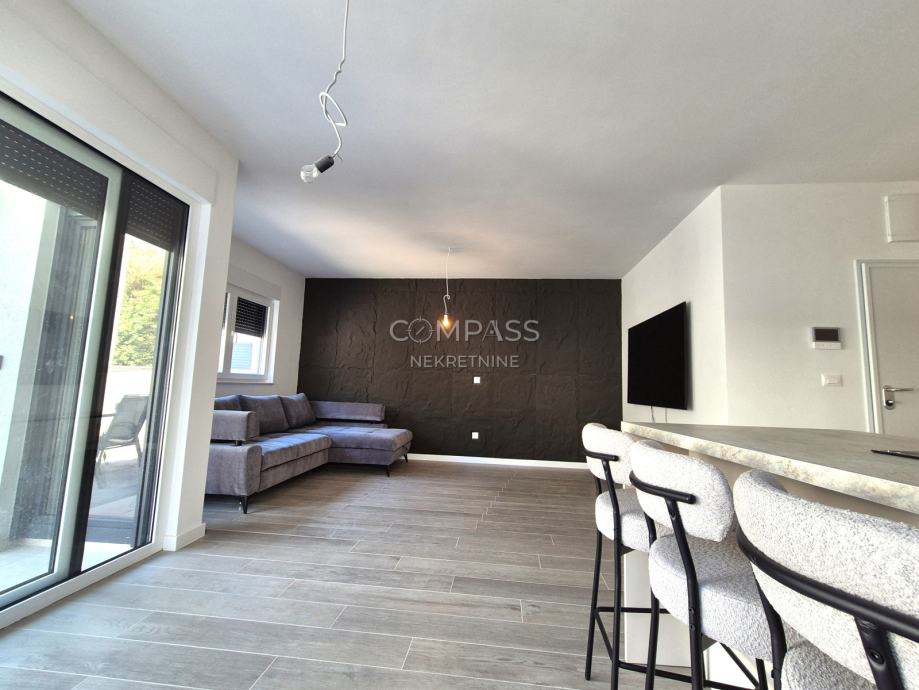 We offer assistance in renting a beautiful ground-floor apartment in a new building in Strožanac, covering 55 m². The apartment consists of a hallway, bedroom, bathroom, and an open-plan living area that includes the kitchen, dining room, and living room with access to a private terrace with a small garden. The apartment comes with a garage parking space. It is newly furnished and this will be the first occupancy. Although most equipment is installed, some details such as the cooker hood, chandeliers, and sockets are yet to be completed and will be installed soon.The apartment is located in an excellent location, close to all essential amenities for a comfortable daily life.For a viewing appointment, contact us at +385 91 607 56 27 (Maja), +385 91 638 14 92 (Leana) or by email at info@compass.hr.