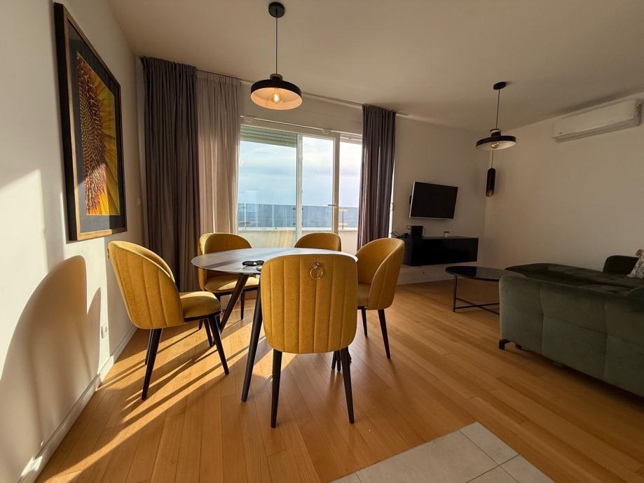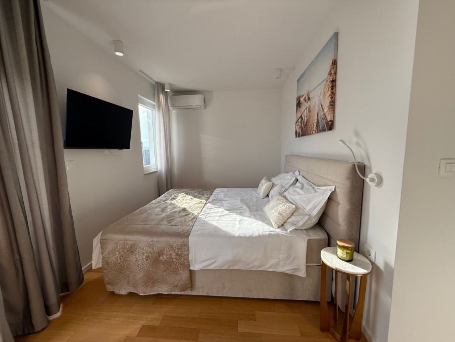 Pogled na more iz stana je zaista poseban, panorama plavetnila i zelenila što pruža užitak življenja u njemu. Sastoji se od dvije spavaće sobe, dva sanitarna čvora, kuhinje i dnevnog dijela sa izlazom na divan balkon sa panoramskim pogledom na more i otoke.