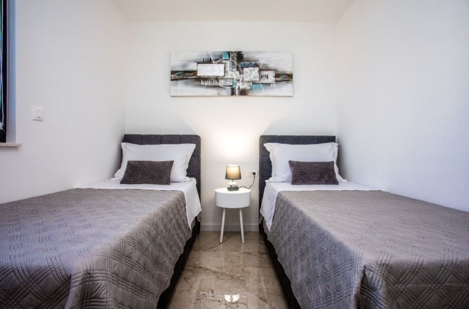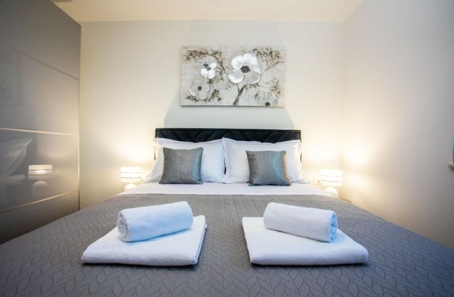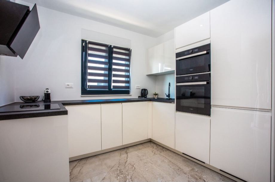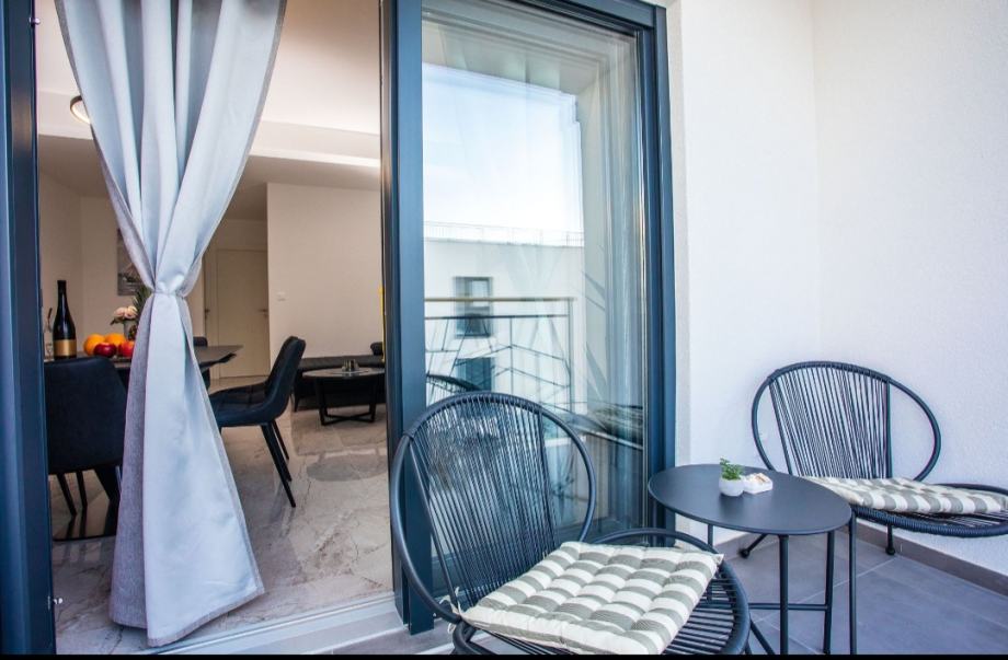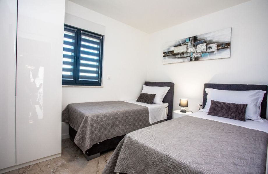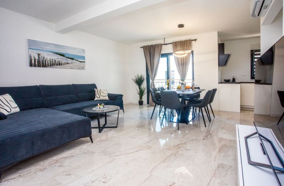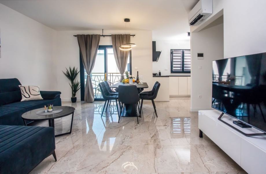 Stan se sastoji od predsoblja , prostrani dnevni boravak s kuhinjom i blagovaonicom, 2 spavaće sobe, kupaonica, balkon s prekrasnim pogledom na more.