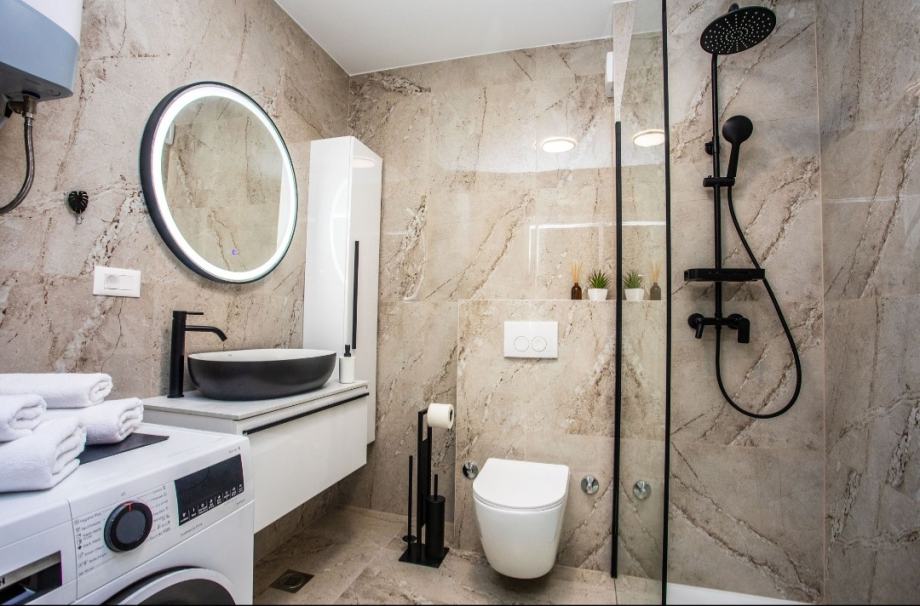 Stan je prostran i funkcionalnog rasporeda, idealan za obitelj, par ili poslovne ljude koji žele mir, more i blizinu Splita.