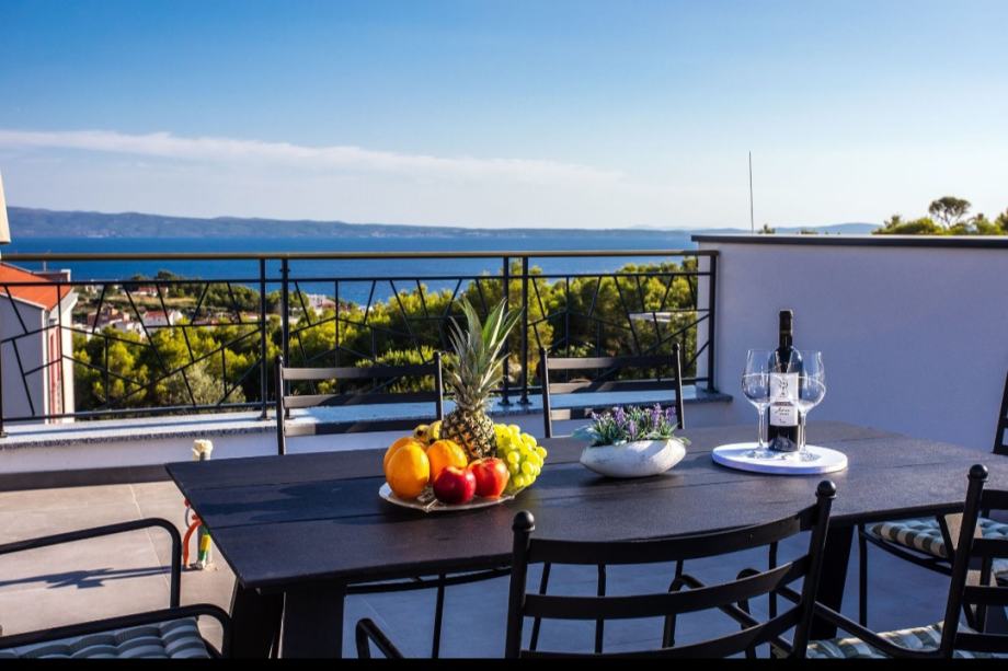 Iznajmljuje se prekrasan, potpuno namješten trosoban stan u Strožancu (Podstrana) na 2. katu uredne i mirne zgrade, s otvorenim i očaravajućim pogledom na more.