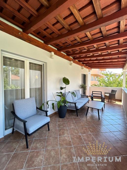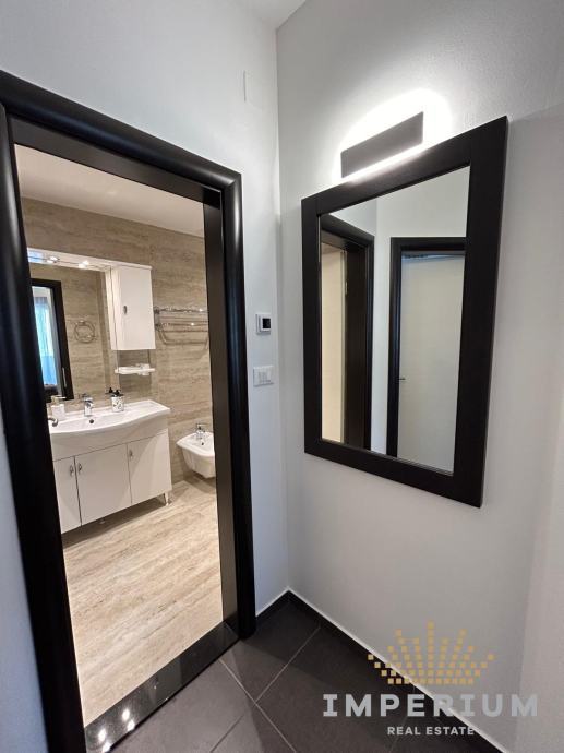 Stan se nalazi na 1. katu manje stambene zgrade, ima cca 70 m2, a sastoji se od dvije spavaće sobe, kuhinje s blagovaonom, dnevnog boravka, kupaonice i wc-a te velikog balkona na kojem se nalazi jacuzzi.