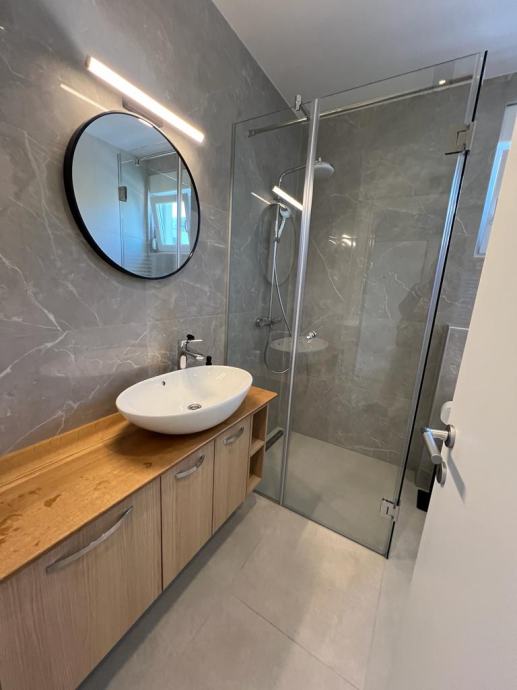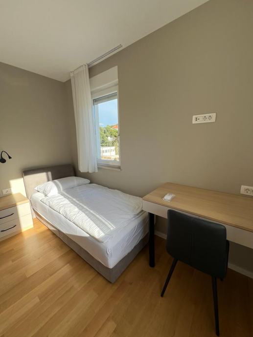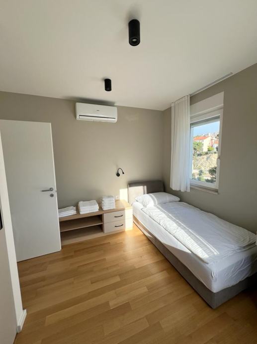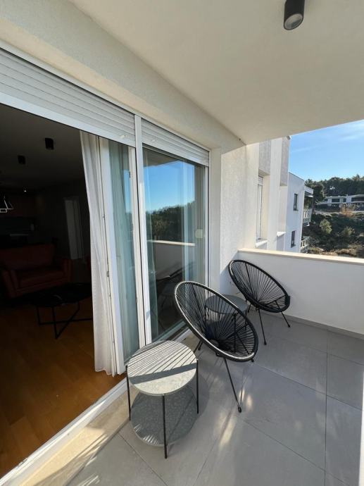 Pogled na more iz stana je zaista poseban, panorama plavetnila i zelenila što pruža užitak življenja u njemu. Sastoji se od tri spavaće sobe, dva sanitarna čvora, kuhinje i dnevnog dijela sa izlazom na terasu te vanjsko parkirno mjesto.